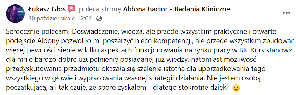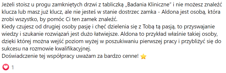 Szansę na życie w bezpieczeństwie finansowym, spełnieniu zawodowym i możliwości spełniania marzeń💫 Ponad 200 osób, które zaufało mojej wiedzy i doświadczeniu w branży Badań Klinicznych już rozpoczęły swoją przygodę z branżą Badań Klinicznych